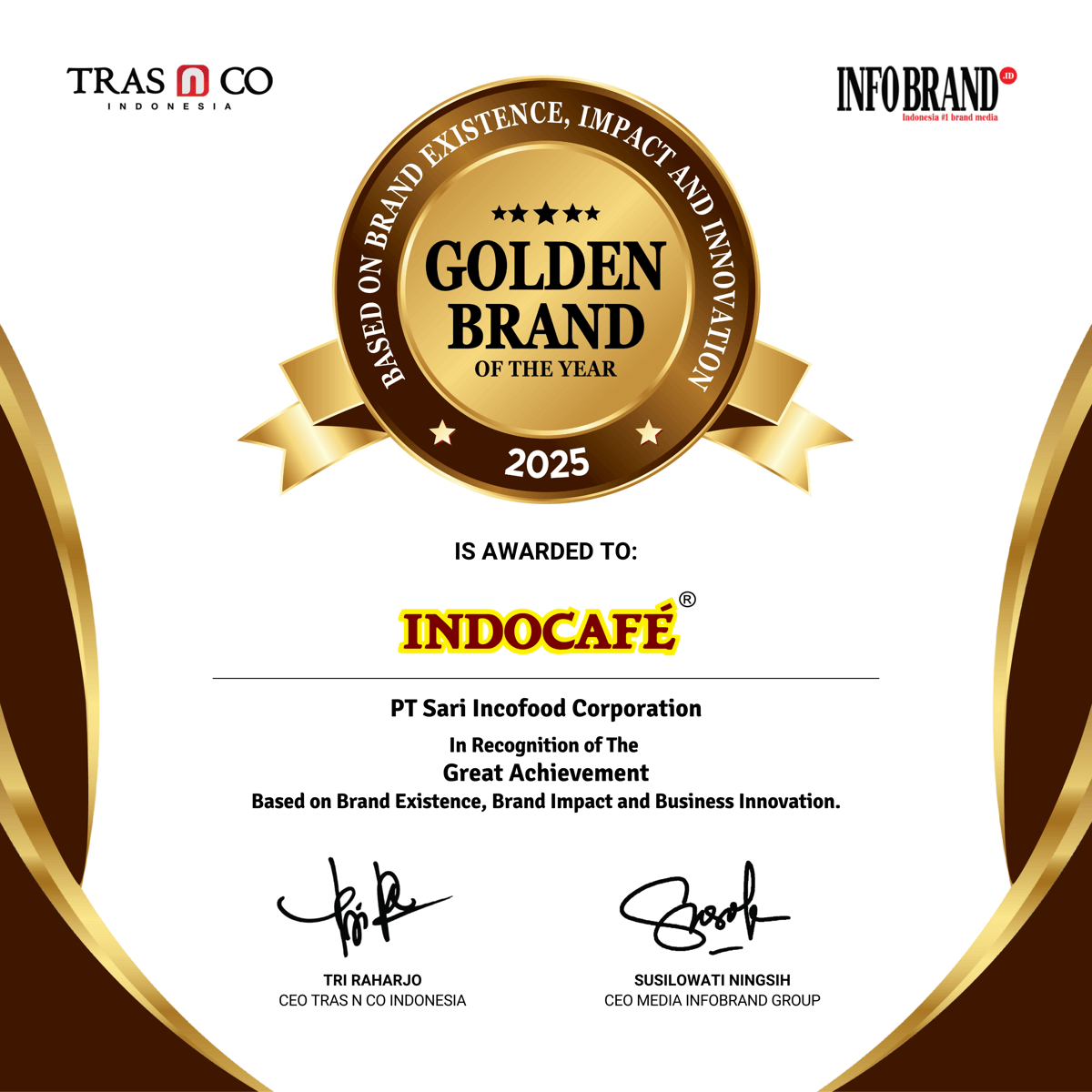 PT. SIF adalah pemilik merek INDOCAFE, MAXTEA, FARMLAND, PRIVATE CLUB, WESTINCAFE, JAVACAFE, EXPRESS CAFE, MASTER, CHOCOCINO, INDOCREAMER dan MAXCREAMER.